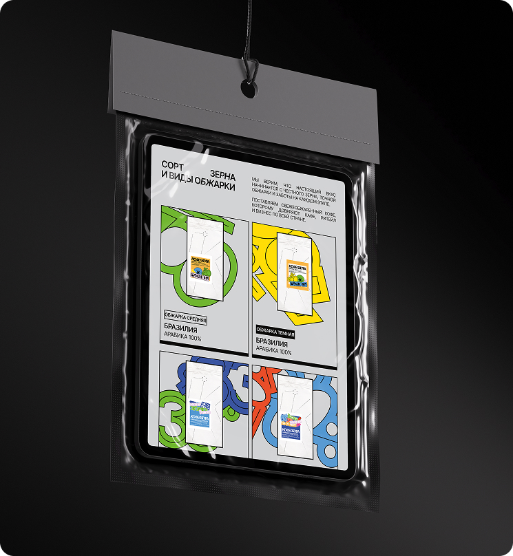 Такое сочетание структурированных элементов и эмоциональных всплесков формирует уникальный визуальный язык Кофельтуры: от аккуратной структуры до насыщенной динамичной графики, от минимализма к движению и эмоциям, отражая характер бренда и атмосферу кофе.
